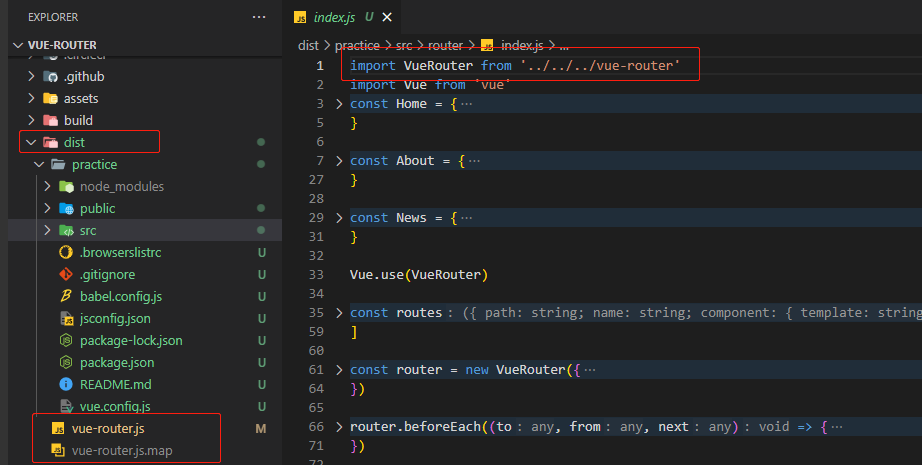 npm install在 dist 目录下添加 vue 项目, 可以是 html,更建议通过 vue-cli 或 vite 创建项目,不安装 vue-router, 然后通过相对路径引入 dist 目录下的 vue-router.js。