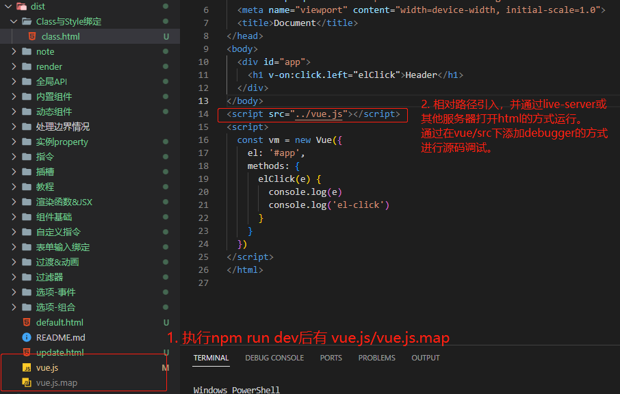 在 dist 目录下,根据您的调试需求,创建相关文件,并通过相对路径的方式引入 vue